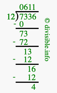 Note that in the problem 7336 divided by 12, the numbers are defined as follows: