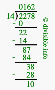 Note that in the problem 2278 divided by 14, the numbers are defined as follows: