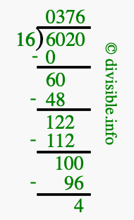 Note that in the problem 6020 divided by 16, the numbers are defined as follows:
