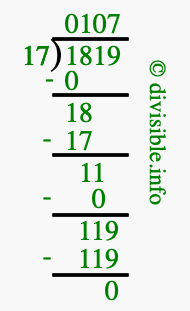 Now we will show you the answer to 1819 divided by 17 as a fraction, or more specifically, as a whole number.