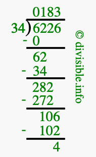 Note that in the problem 6226 divided by 34, the numbers are defined as follows: