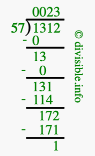 Note that in the problem 1312 divided by 57, the numbers are defined as follows: