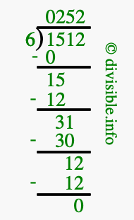 Now we will show you the answer to 1512 divided by 6 as a fraction, or more specifically, as a whole number.