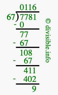 Note that in the problem 7781 divided by 67, the numbers are defined as follows: