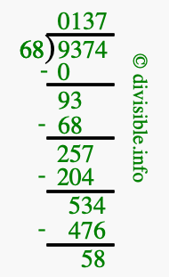 Note that in the problem 9374 divided by 68, the numbers are defined as follows: