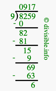 Here we will show you an image that illustrates how to calculate 8259 divided by 9 using long division. We will also give you the answer to 8259 divided by 9 (8259 ÷ 9) as a fraction and as a decimal.