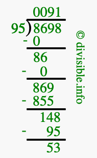 Note that in the problem 8698 divided by 95, the numbers are defined as follows: