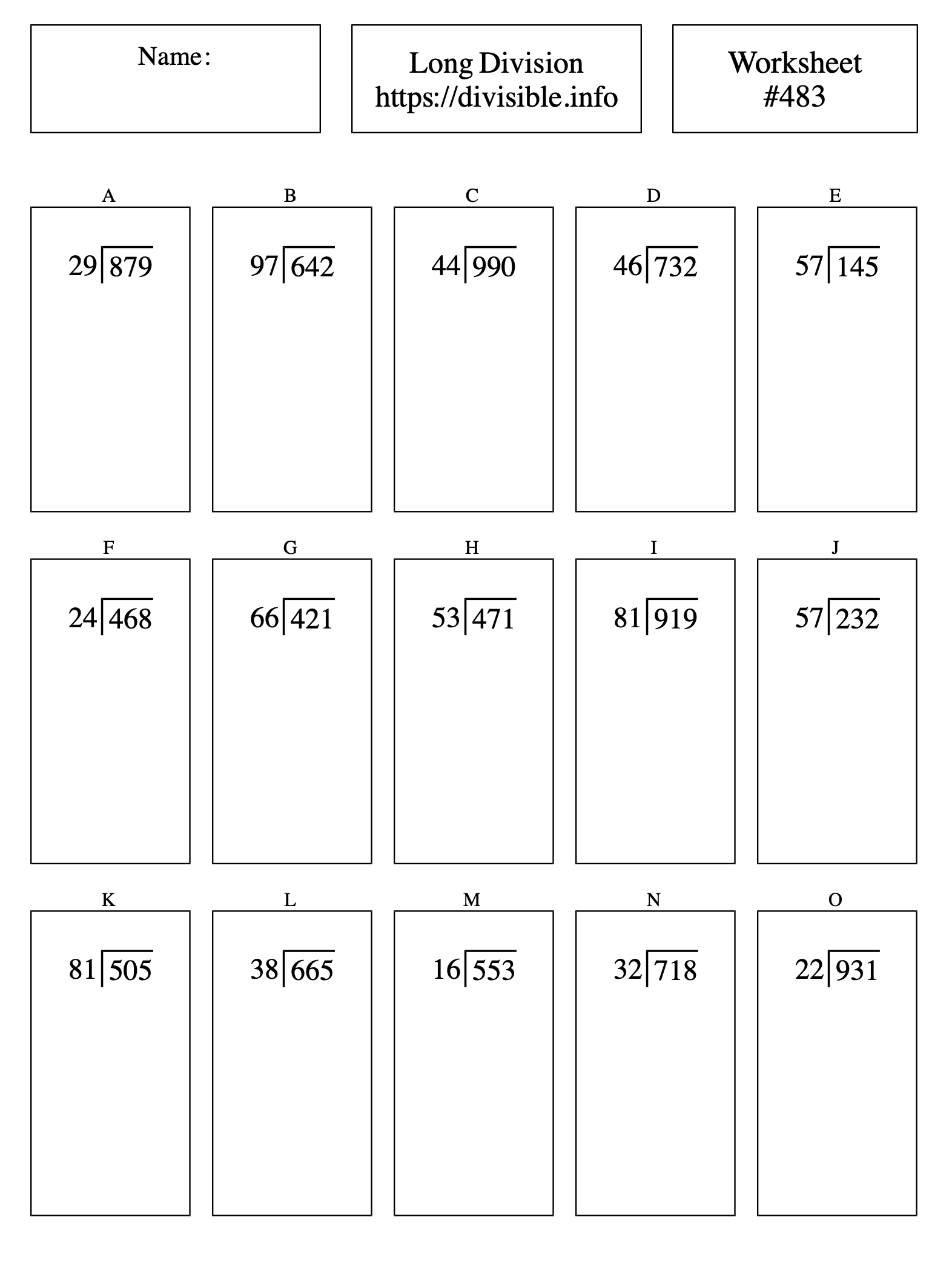To view the solution to any of the problems on Long Division Worksheet #483, please choose the problem letter below the worksheet.