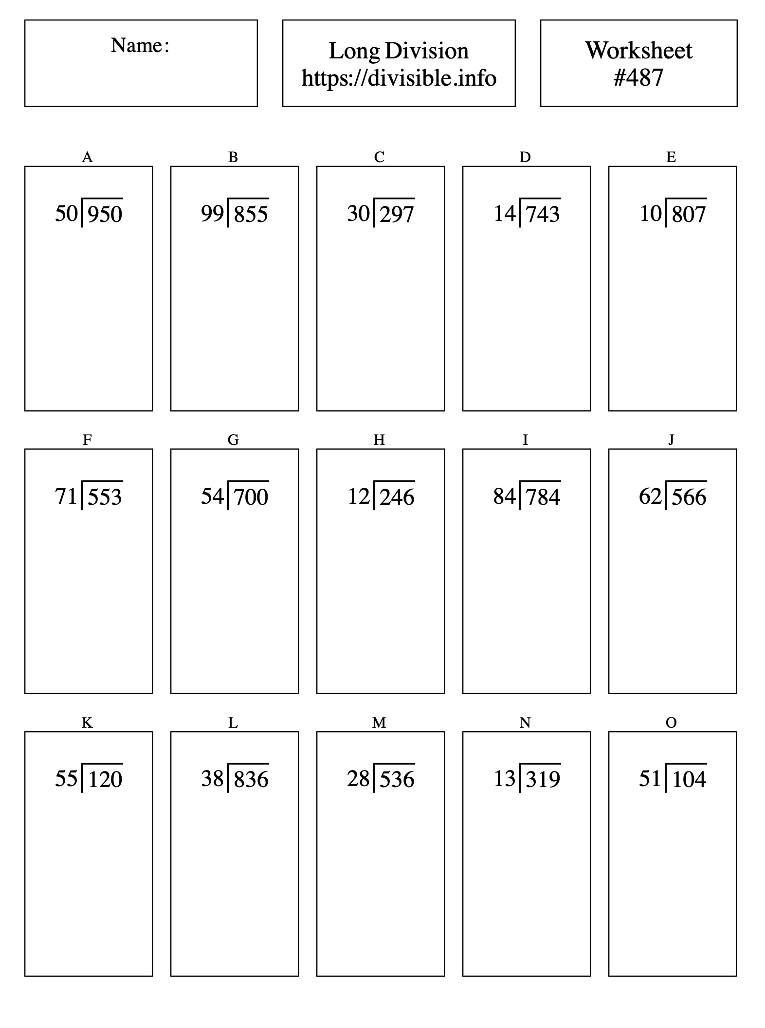To view the solution to any of the problems on Long Division Worksheet #487, please choose the problem letter below the worksheet.